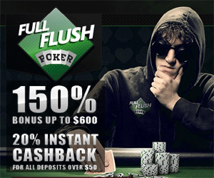 Visit Full Flush Poker to Claim Free Poker + 150% up to $600 Bonus PLUS 20% Cashback bonus